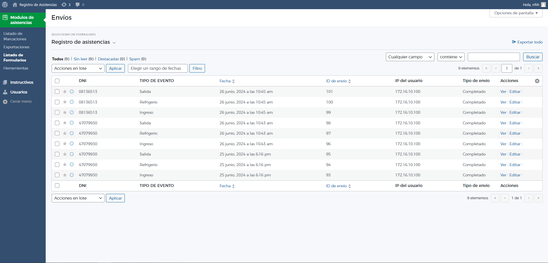 馃憠馃Vamos a seleccionar el men煤 "Reportes" el sistema autom谩ticamente nos redirecciona al listado de marcaciones.