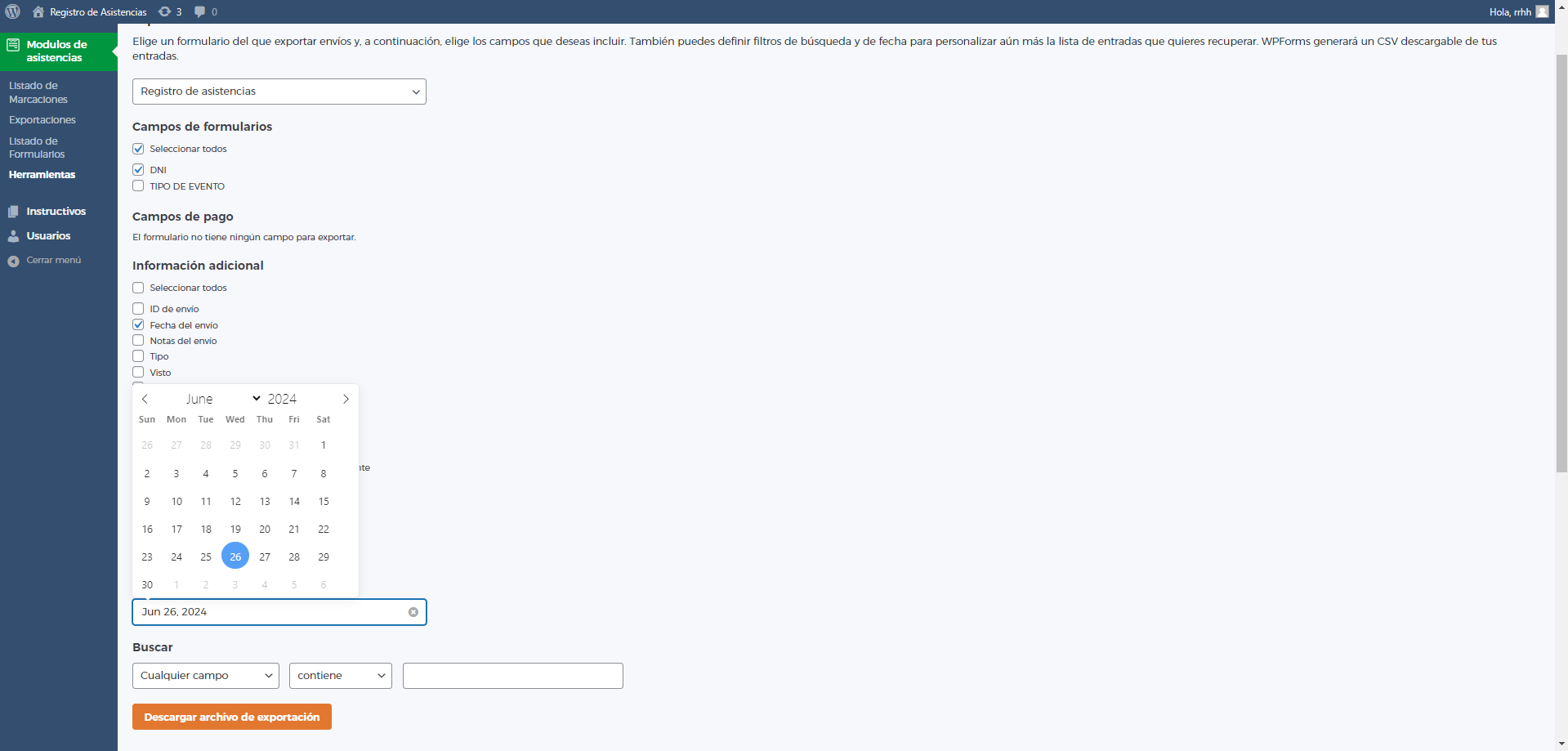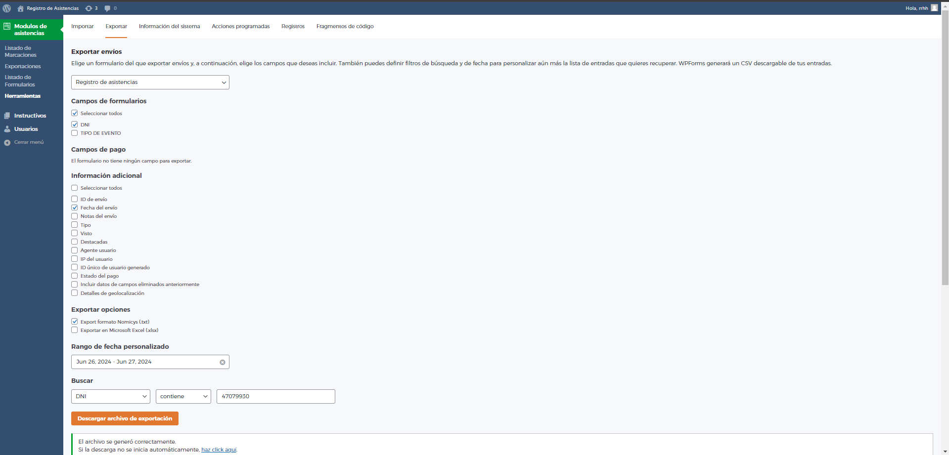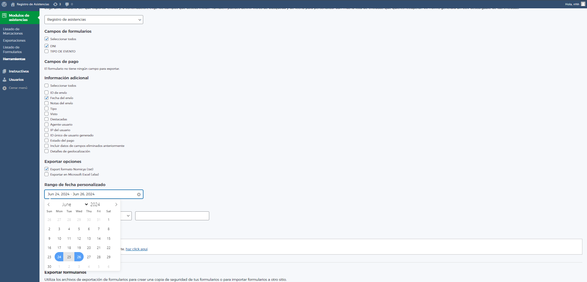 馃挕Realizar doble clic en el d铆a que se requiere exportar.